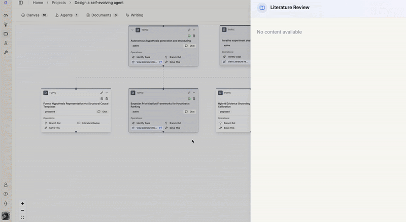 Turn curiosity into clarity. Our Research Canvas helps you expand, branch, and focus your ideas through a tree of AI-guided thoughts. Deepen or broaden your direction freely — discover connections that traditional tools can't surface.